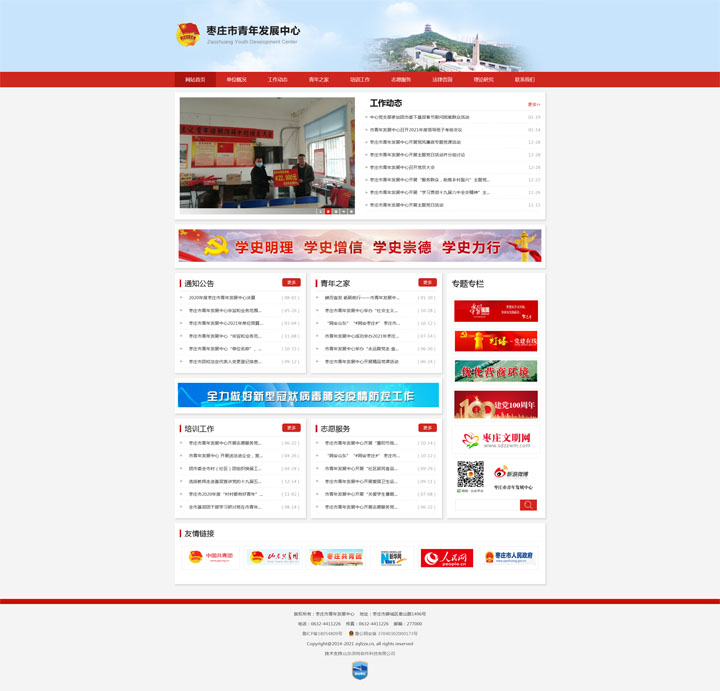 棗莊市青年發(fā)展中心的前身為棗莊市團(tuán)校,成立于1981年,是一所以培養(yǎng)共青團(tuán)干部和青年人才為主業(yè)的青年干部培訓(xùn)學(xué)校。坐落于棗莊市薛城區(qū)泰山路,占地20余畝,建筑面積12000平方米。 建校以來,在上級黨團(tuán)組織的關(guān)心和支持下,我們始終堅持正確的辦學(xué)方向,以培養(yǎng)具有較高理論素養(yǎng)和工作能力的青年人才為己任,銳意創(chuàng)新、積極進(jìn)取,全面落實服務(wù)大局、服務(wù)社會、服務(wù)青少年的各項任務(wù);緊密結(jié)合廣大團(tuán)員青年的學(xué)習(xí)需求,不斷創(chuàng)新培訓(xùn)模式,充分發(fā)揮陣地作用,創(chuàng)造性地組織開展了形式新穎、內(nèi)容豐富的培訓(xùn)活動;采取長短結(jié)合、內(nèi)外結(jié)合、與經(jīng)濟(jì)發(fā)達(dá)地區(qū)聯(lián)合等多種形式,不斷拓寬辦學(xué)領(lǐng)域,擴(kuò)大辦學(xué)規(guī)模,提高辦學(xué)質(zhì)量,先后舉辦了職業(yè)中專班、軍地人才班和成人學(xué)歷班;不斷豐富工作內(nèi)容,提升培訓(xùn)質(zhì)量,逐步形成了以團(tuán)干部培訓(xùn)為主,青少年研究、青少年素質(zhì)拓展、青年志愿者培訓(xùn)、成人學(xué)歷教育,“四位一體”的辦學(xué)格局。 2003年3月團(tuán)市委在市團(tuán)校設(shè)立“棗莊市青春創(chuàng)業(yè)指導(dǎo)中心”;2004年9月,棗莊電大市團(tuán)校分校成立;2005年6月團(tuán)市委在市團(tuán)校設(shè)立全市首批“學(xué)士后流動站”;2010年初在北京大學(xué)的幫助與指導(dǎo)下,市團(tuán)校成立了青少年素質(zhì)拓展培訓(xùn)基地。同時,市團(tuán)校積極響應(yīng)市委、市政府號召,圍繞中心、服務(wù)大局,充分發(fā)揮自身優(yōu)勢,配合市、區(qū)農(nóng)業(yè)局、勞動局,先后承擔(dān)了農(nóng)村勞動力轉(zhuǎn)移、“陽光工程”培訓(xùn)班。 三十多年來,市團(tuán)校完成了25000余名團(tuán)干部和3000余名大中專學(xué)生的教學(xué)培訓(xùn)任務(wù),向蘇州、上海、煙臺等經(jīng)濟(jì)發(fā)達(dá)地區(qū)輸送高素質(zhì)的青年勞務(wù)人員近1000人,累計培訓(xùn)各類青年農(nóng)民1500人次,開設(shè)中央電大“開放教育”本、?茖I(yè)20多個,學(xué)員近1000人,開展素質(zhì)拓展培訓(xùn)5000余人,成功舉辦兩屆全市青年攀巖比賽,受到了社會各界的一致好評。 2017年3月,棗莊市“青年之家”在市團(tuán)校建成投入運(yùn)行,設(shè)置法律維權(quán)、心理咨詢、婚戀交友、志愿服務(wù)、傳統(tǒng)文化教育和素質(zhì)拓展六大模塊,是棗莊共青團(tuán)面向社會、面向青少年的多功能、復(fù)合型、綜合性服務(wù)平臺,是團(tuán)組織使用管理的公益性、綜合性服務(wù)場所。 2017年8月,棗莊市團(tuán)校更名為棗莊市青年發(fā)展中心。展望未來,我們信心百倍,全體教職工將繼續(xù)圍繞黨政中心工作大局,以更加奮發(fā)有為的精神狀態(tài),開拓進(jìn)取、奮力拼搏,立身自身實際,發(fā)揚(yáng)優(yōu)良傳統(tǒng),在新的征程上邁出新步伐,再上工作新臺階,再創(chuàng)事業(yè)新輝煌。