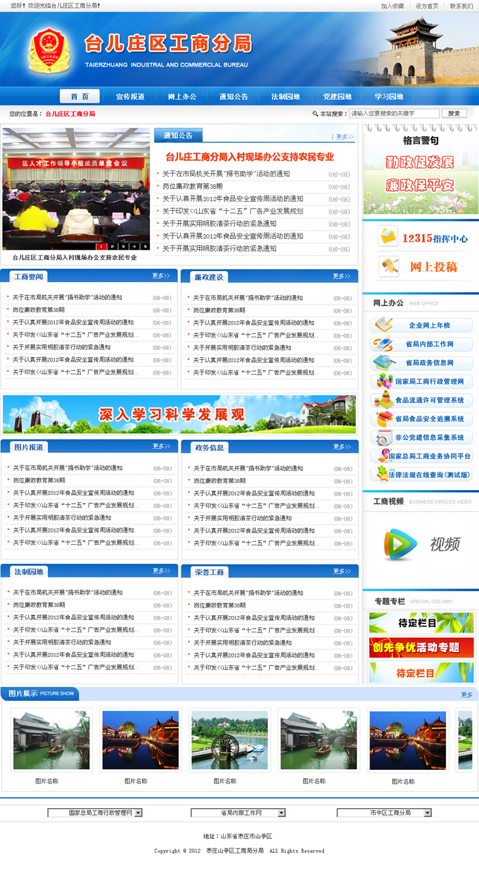 所屬行業(yè): 單位名稱:臺(tái)兒莊區(qū)工商分局[棗莊網(wǎng)站建設(shè)項(xiàng)目]網(wǎng)站地址: