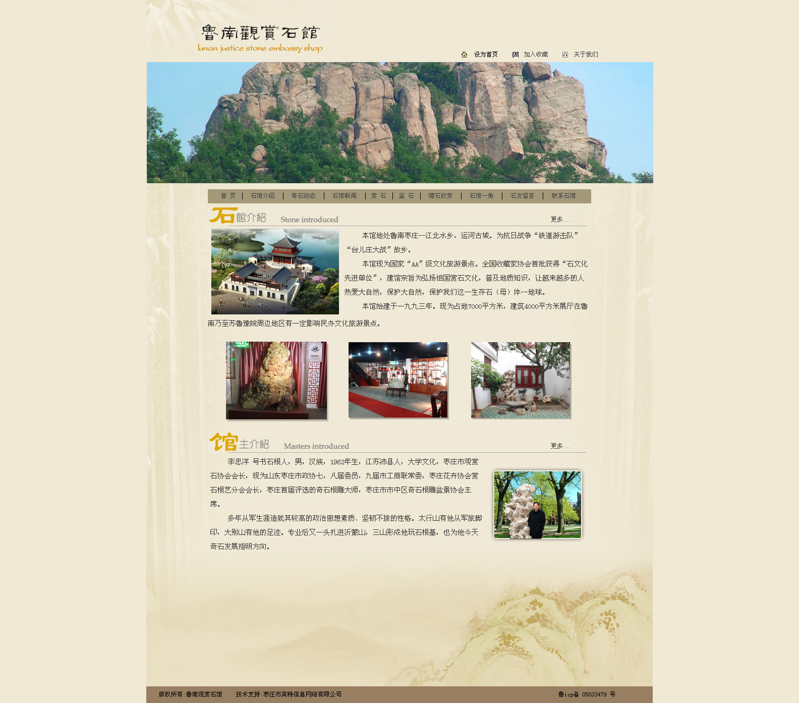 本館地處魯南棗莊--江北水鄉(xiāng),運(yùn)河古城。為抗日戰(zhàn)爭(zhēng)“鐵道游擊隊(duì)”“臺(tái)兒莊大戰(zhàn)”故鄉(xiāng)。 本館現(xiàn)為國(guó)家“AA”級(jí)文化旅游景點(diǎn)。全國(guó)收藏家協(xié)會(huì)首批獲得“石文化先進(jìn)單位”,建館宗旨為弘揚(yáng)祖國(guó)賞石文化,普及地質(zhì)知識(shí),讓越來(lái)越多的人熱愛(ài)大自然,保護(hù)大自然,保護(hù)我們這一生存石(母)體--地球。 本館始建于一九九三年,F(xiàn)為占地7000平方米,建筑4000平方米展廳在魯南乃至蘇魯豫皖周邊地區(qū)有一定影響民辦文化旅游景點(diǎn) 棗莊網(wǎng)站建設(shè) |